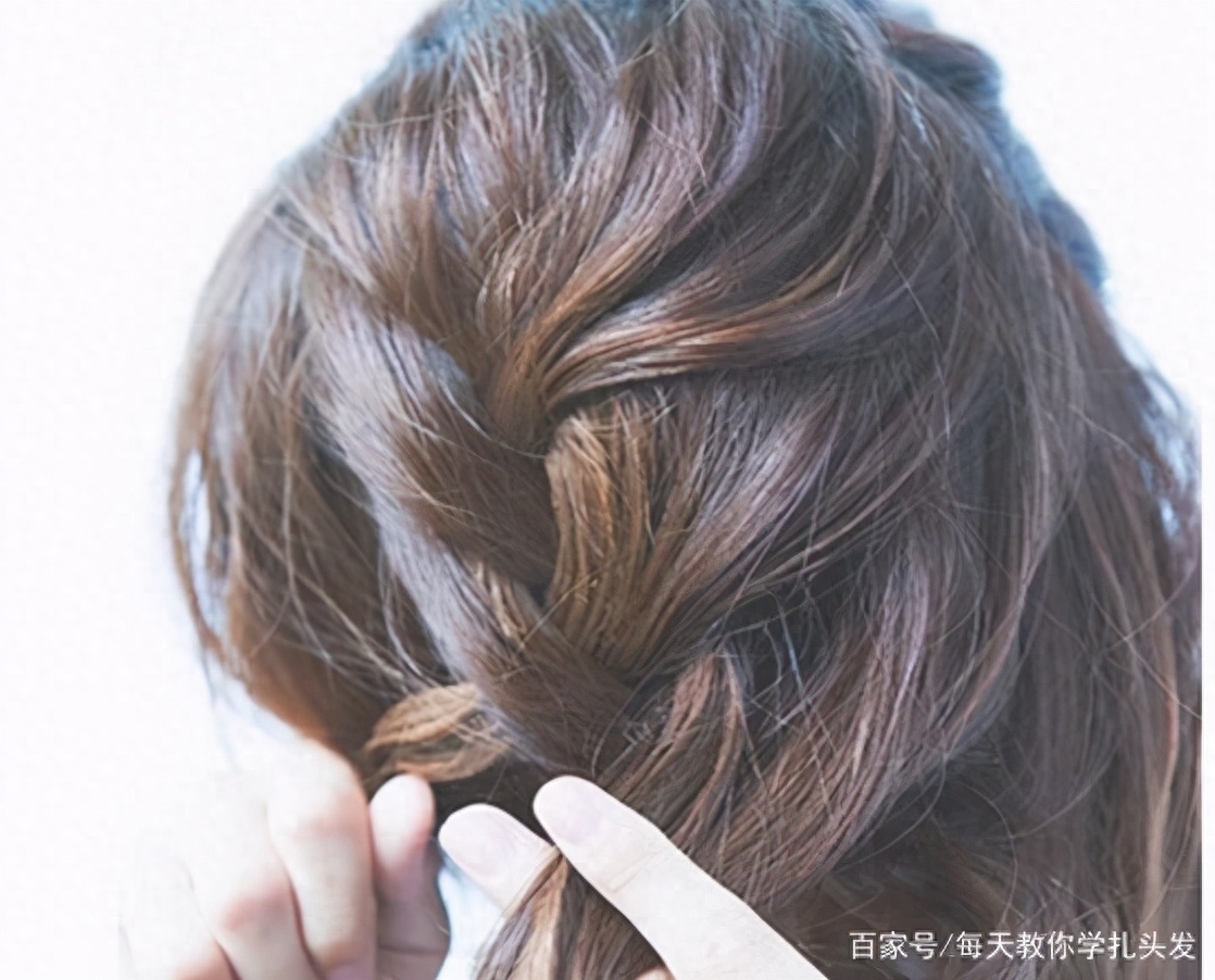 接下来我们后面的头发又要怎么扎双蜈蚣辫呢?这时候我们就要把发尾的头发给简单地编一下,这样编出来的双蜈蚣辫就完成一半了,还有另一半的头发没有完美。