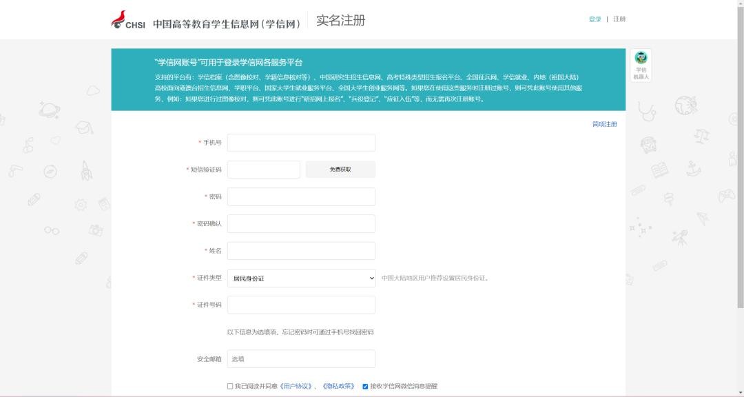 注册学信网账号。如已有学信网账号可直接登录系统。