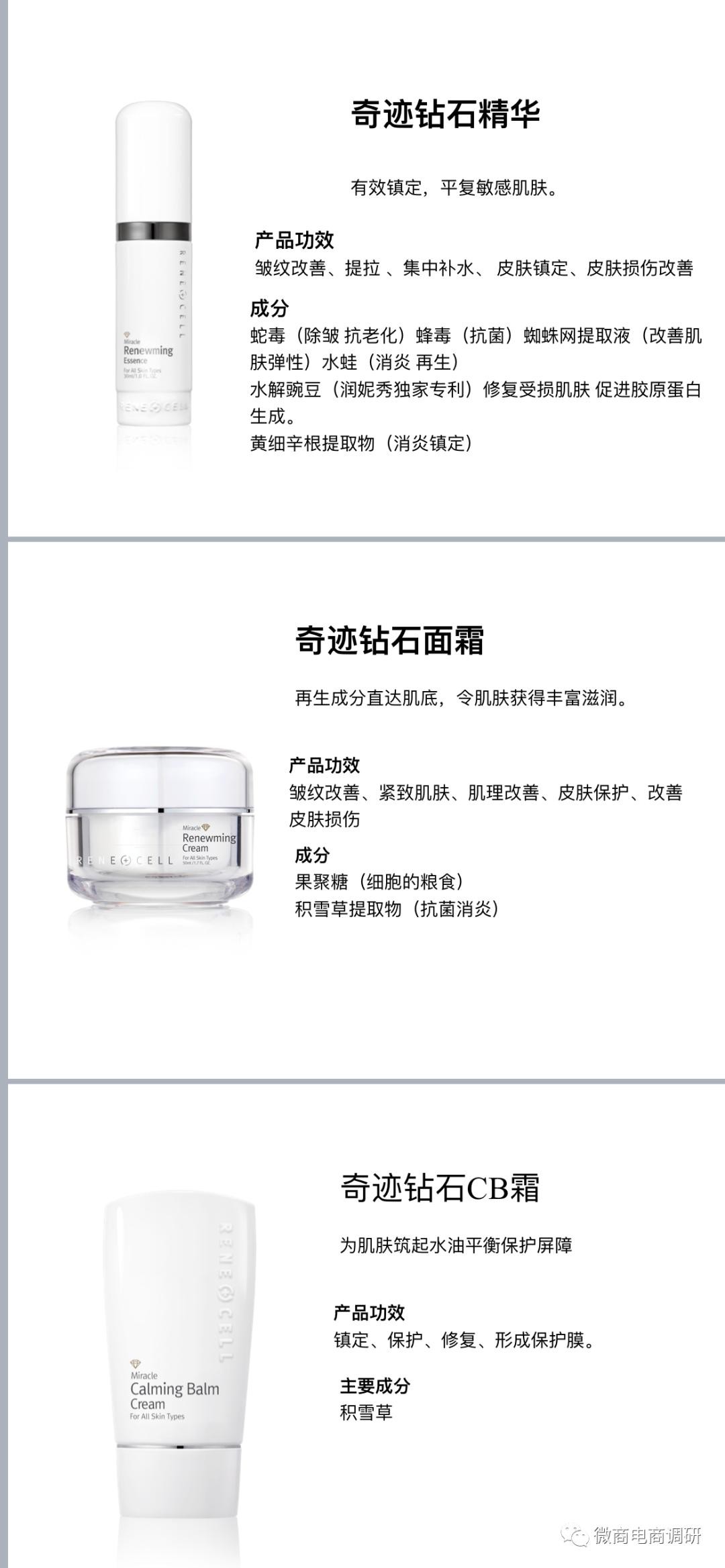 那么接下来我们就来说一说润妮秀的相关产品。据了解,润妮秀的产品大致分为钻石系列和日常护肤品两大类,其中最热门的便是钻石系列,就是经销商们常说的种钻,也叫做璀璨焕肤系列,包含了精华、面霜、CB霜以及一个钻石面膜。