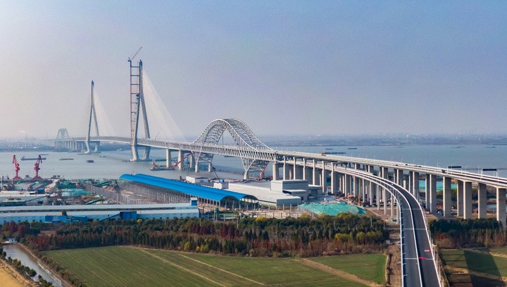 崇启公铁长江大桥是上海至南京至合肥高铁重点控制性工程。大桥构造为双层布置,上层是双向6车道、时速100公里的一级公路;下层是时速350公里的双线高速铁路和时速250公里的双线城际铁路,实现了不同交通方式的高效融合。