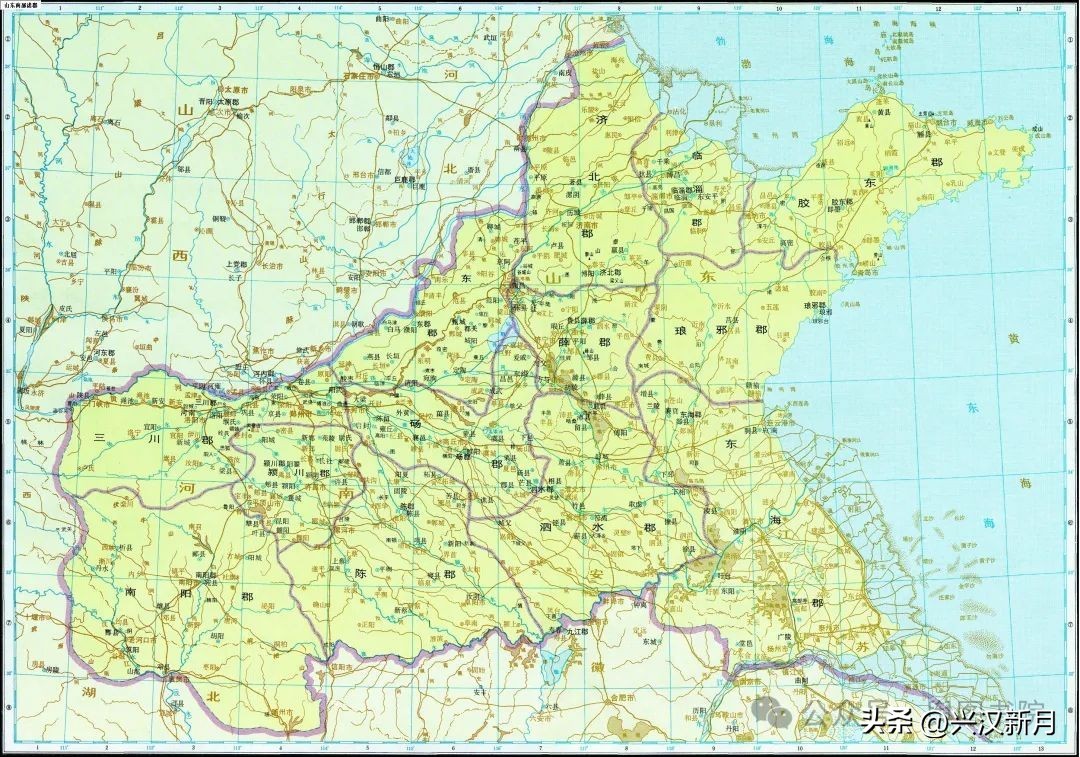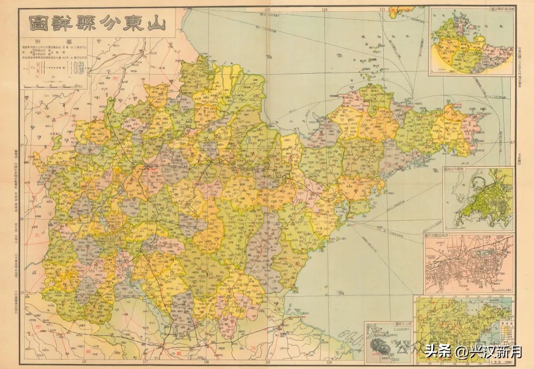 (1946年山东分县图,此时滕县微山湖界限已经非常曲折)