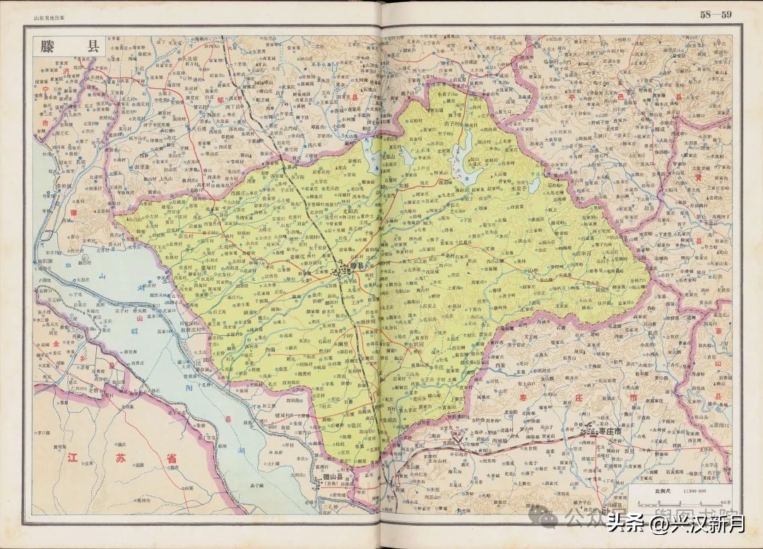 (滕县地图,1964年,相比之前已经丢失了湖边的土地)