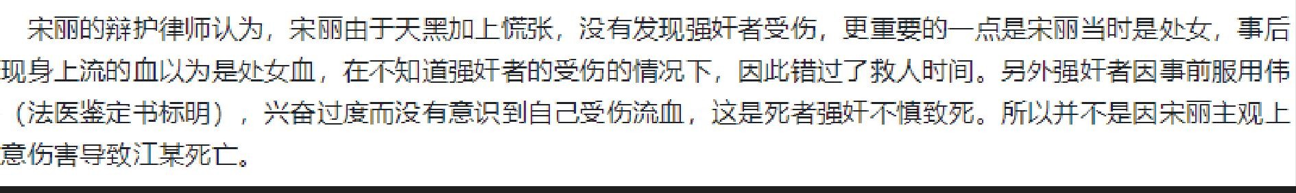 对此,宋丽的律师也提出了上诉,律师表示:当时的宋丽虽然清醒,但是并不知情江某受伤,而且尸检报告显示,江某死前服过药物,不完全确定是失血而亡。