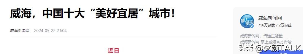 [2]官方媒体 威海新闻网2024年5月22日发布《威海,中国十大“美好宜居”城市!》