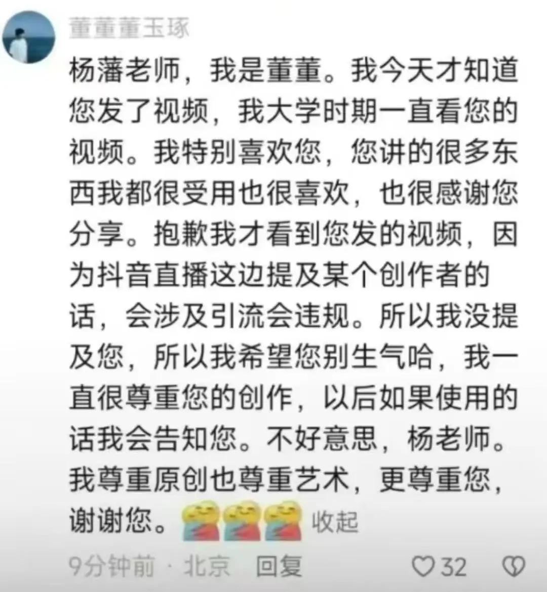 平台一直在保护原创、处置抄袭。杨藩大度不深度追究,董董也该给个正面的合理的解释。