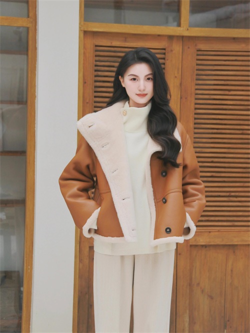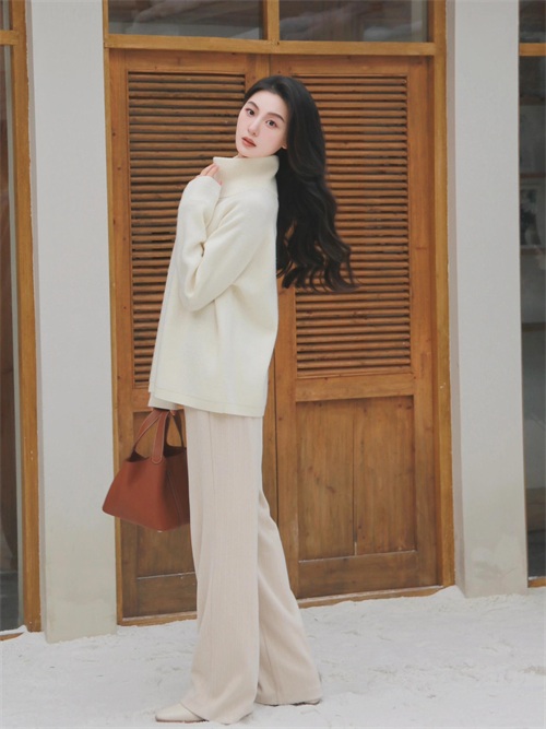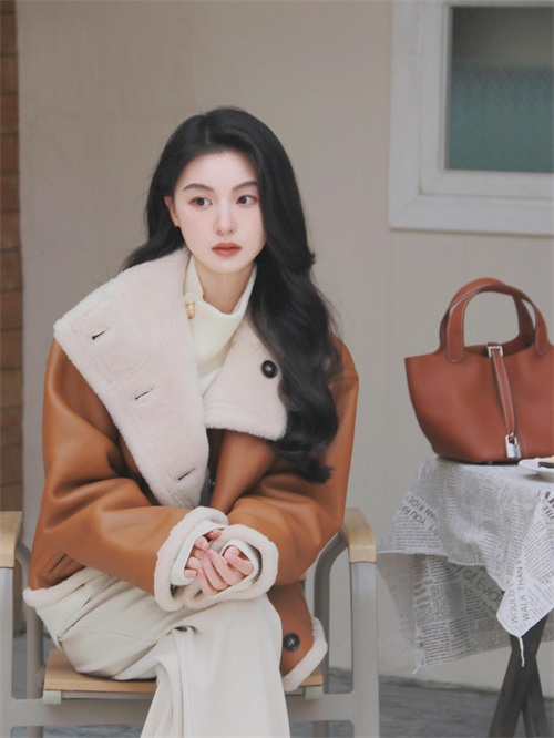 不想刻意摆拍,学会扬长避短很重要,我们可以保持侧身站立,一手拎包自然摆放,靠近镜头的手轻轻抬起扶着衣领,身体微微倾斜向后靠,这样温婉大气的姿势,既突出了身体的曲线美,又能营造一种慵懒而又不失优雅的感觉,简约又出片。