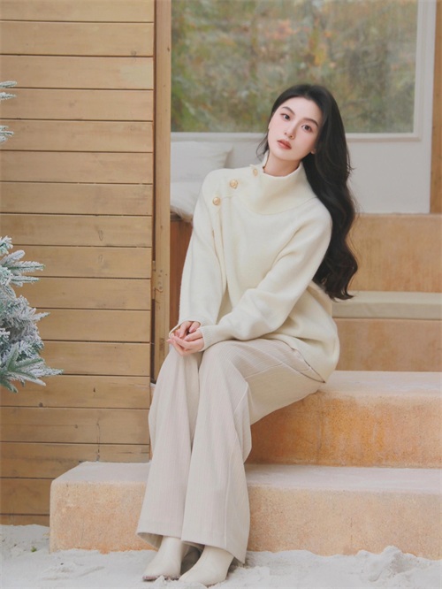 日常随处可见的台阶也是很不错的场景,让模特坐在台阶上,双手搭着膝盖,轻轻歪头向着一侧,然后眼神自然注视相机,看似随意的姿势也能拍出一种韵味美,很适合用来表达一种静谧而深邃的情绪,还能通过姿势的变化和角度的调整,拍出不同的感觉。