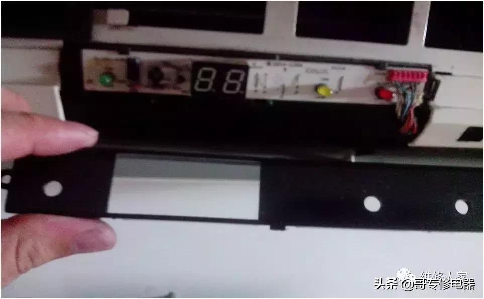 第四步拆除空调控制面板的外壳,就是在显示屏两旁的螺丝拆除。