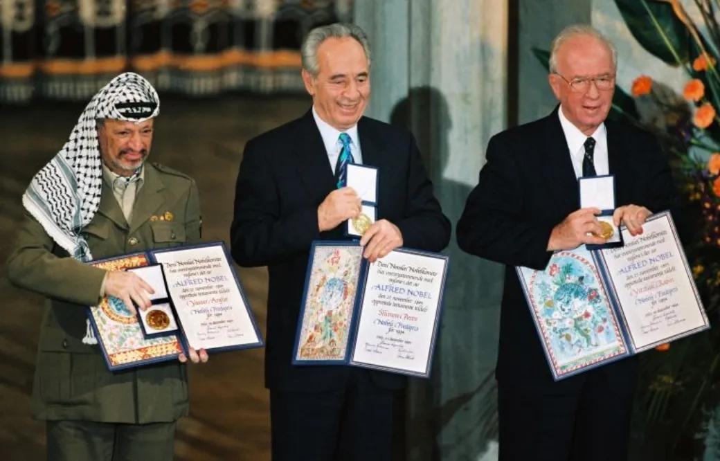 拉宾在政坛中逐渐认识到,极端的军事手段无法从根本上解决巴以矛盾,反而会使局势更加复杂和危险。于是,他开始寻求与巴勒斯坦人的和解之路。1993年,拉宾与巴勒斯坦解放组织的阿拉法特在挪威秘密会面,达成了具有里程碑意义的《奥斯陆协议》。该协议为巴勒斯坦人建立有条件建国的框架,为巴以和平进程注入了新的活力,也让拉宾与阿拉法特一同获得了诺贝尔和平奖。