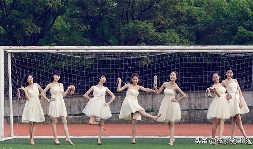 现在很多学校都有航拍设备,所以这个问题不难解决,大家都躺在操场的圆形线条之上,摆出造型,从上向下可以拍摄出对称的美感,这个创意非常不错,在摆姿势的时候,要调整每个人之间的距离,避免看起来缝隙过大或过小的问题。