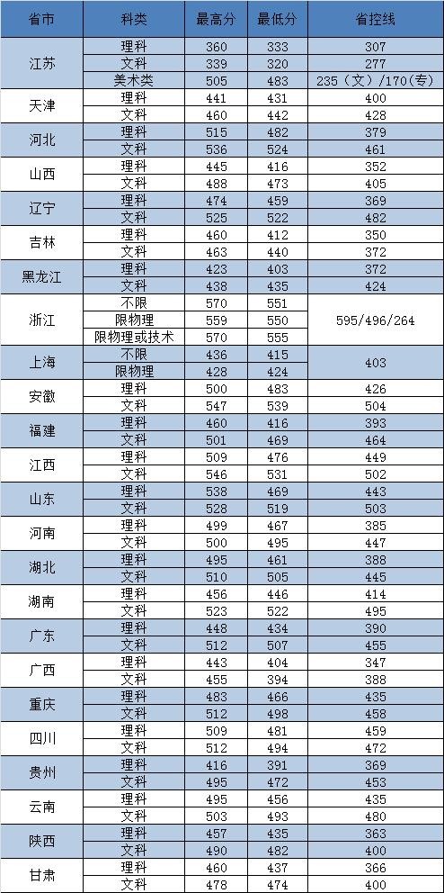 毕业生年终就业率保持在97%以上,大部分专业考研升学率超15%,其中“985”“211”高校录取率占比30%左右,在同类院校中位居前列。2019年成贤学院在各地的录取分数参考如下: