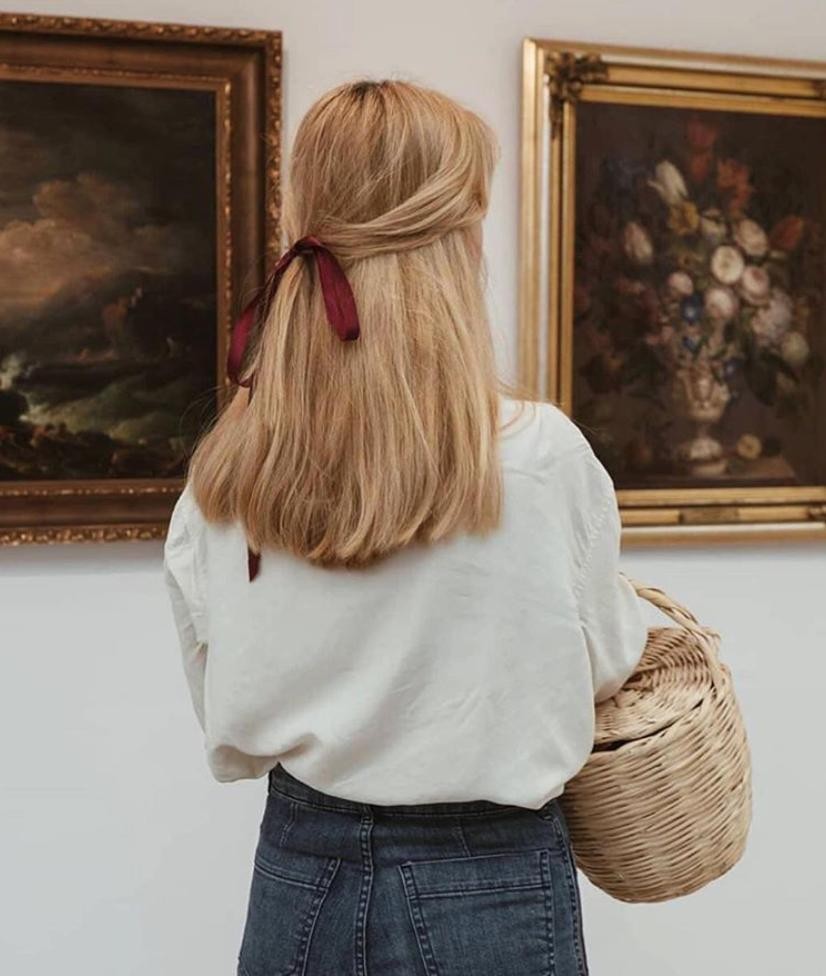 或是丝带作为修饰,小巧的丝带蝴蝶结,麦浪般的金色发丝,再加上田园感衣着,满满的文艺气息感。
