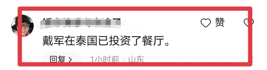 有知情的网友透露,戴军还在泰国当地投资了餐厅,敢把美食生意做到国外的明星,戴军可能还是娱乐圈的“第一人”。