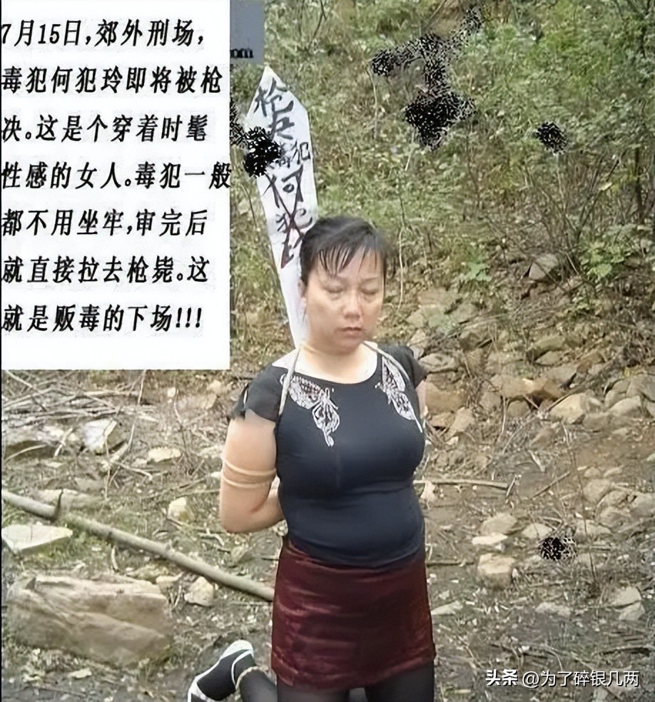这是毒贩何玲,被执行死刑的现场照片,打扮得非常性感,这种贩毒份子不知道毁了多少家庭,就应该严惩。