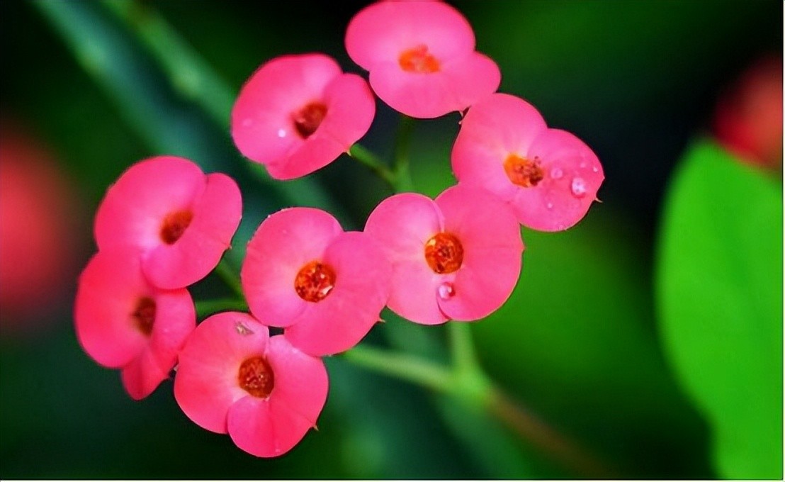 虎刺梅是一种带刺的梅花,它的颜色鲜艳,阳光越烈,开得越艳。虎刺梅可以一年四季都开花,花期很长久,观赏性很强。