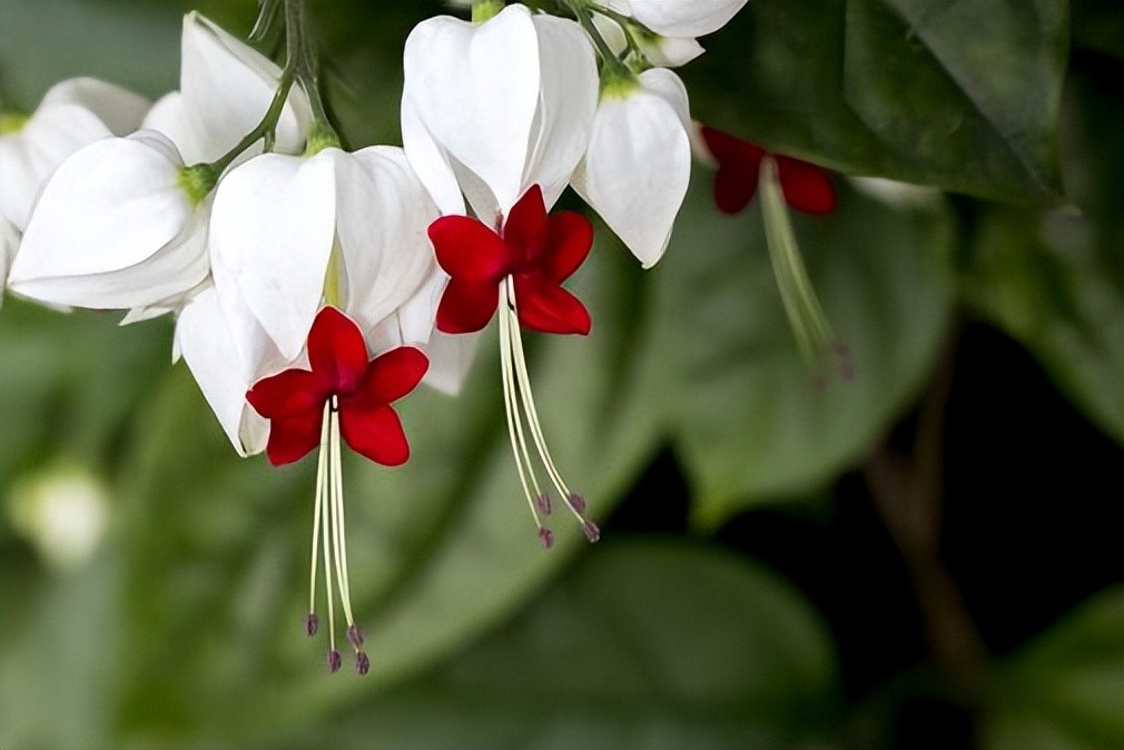龙吐珠的名字很有意思,这种花的花期可长了,一年四季开花不间断。开出红色的小花,开会吐珠之,爬满整面墙特别好看。