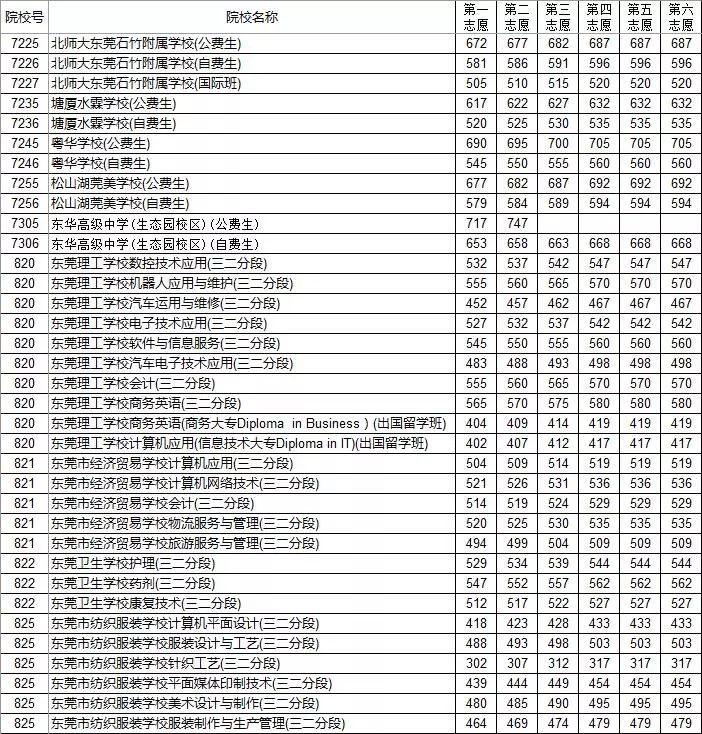 从今年各校录取分数线来看,东莞中学、东莞中学松山湖学校、东莞市第一中学、东莞市高级中学、东莞市实验中学五所学校录取分数线对比去年略微下降。