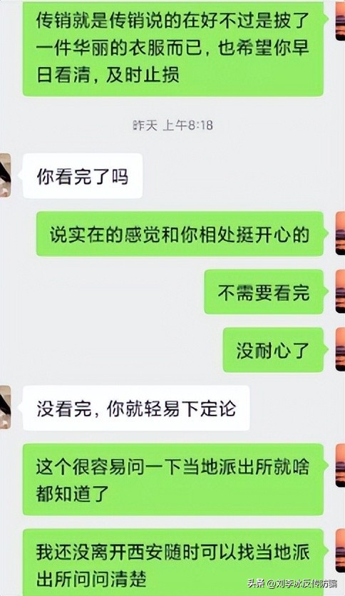 在西安1040传销呆了20天,从开始的计划逃跑,到最终的离开,我的朋友从一个熟悉的人变成了陌生的人,把我永久拉进了黑名单,只因为他说我说了它是传销,而它却还一直在梦里,做着自己的白日梦,希望那些正在被洗脑的别被骗,参与者早日清醒,也希望警方尽早清除这颗传销毒瘤。