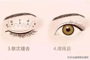 埋线双眼皮它是根据术前设计的双眼皮弧度和宽度等形态,通过缝合的方式将医用专用线材依次缝合,埋藏于上睑皮肤和睑板之间,两者形成黏连,从而形成的双眼皮。