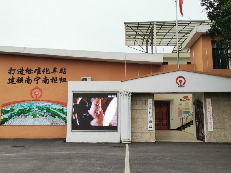 4、南宁南站南宁南站位于南宁市江南区新站路,担负着湘桂、南昆以及南防铁路的货物列车中转与发送,承担着进出南宁枢纽所有货车的编组作业,是西南地区货物出海的一个重要的中转枢纽。该站建于1952年,原名沙井站,现为一等站,办理整车、零担货物发到、行李、包裹托运,不办理客运、整车爆炸品及整车一级氧化剂发到。