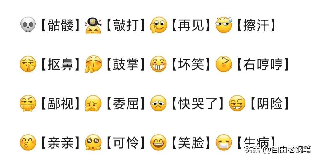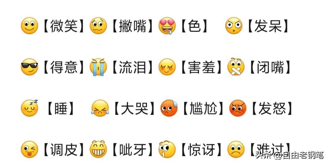 我们用表情符号,首先就要懂得图符表达的意思,这样才不会出洋相闹尴尬。下面是“自由老钢笔️”在下班后花了两晚上,仔细认真整理出微信中109个表情符号的图意,希望得到你的认可。