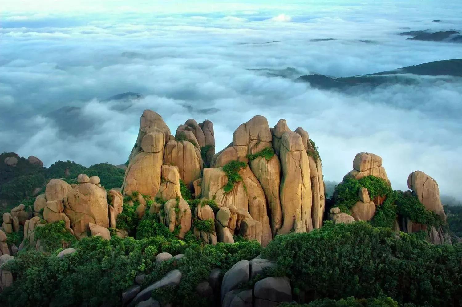 - 九仙山:位于德化县西北部,主峰海拔1658米,山上多奇峰异石、清泉飞瀑,有永安岩、灵鹫岩等寺庙,还有云海、雾凇等气象景观,适合登山、观光、避暑。