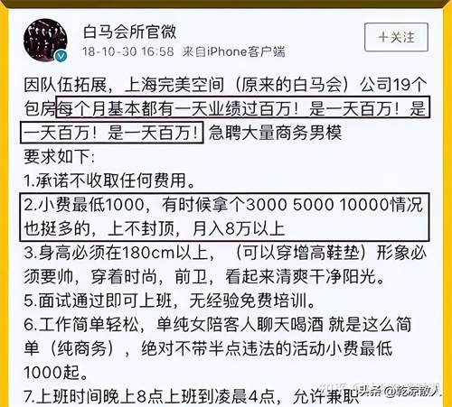 从招聘简章就可以看到,白马会所对自家的服务人员要求非常高,而能够来到这里消费的女性也都是非富即贵,她们最不缺的东西就是钱。