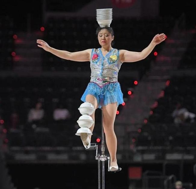 全场观众的目光,都聚焦在她头顶上那摇摇欲坠的碗。每一次转动,每一次叠碗,都像是在挑战地心引力,挑战人类的极限。
