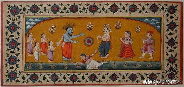 杜瓦萨(蓝色)。注意他脚下水域中的恒河女神