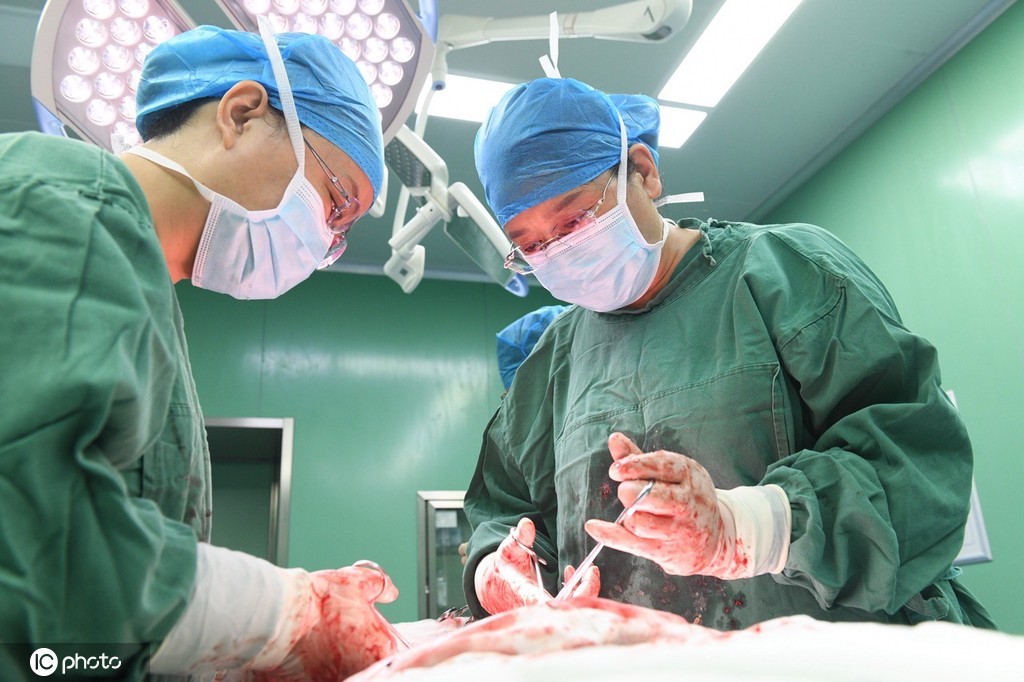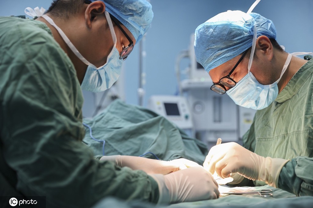 8月17日,江苏省连云港市赣榆区人民医院的医生在手术台前为患者手术。图片来源:IC photo