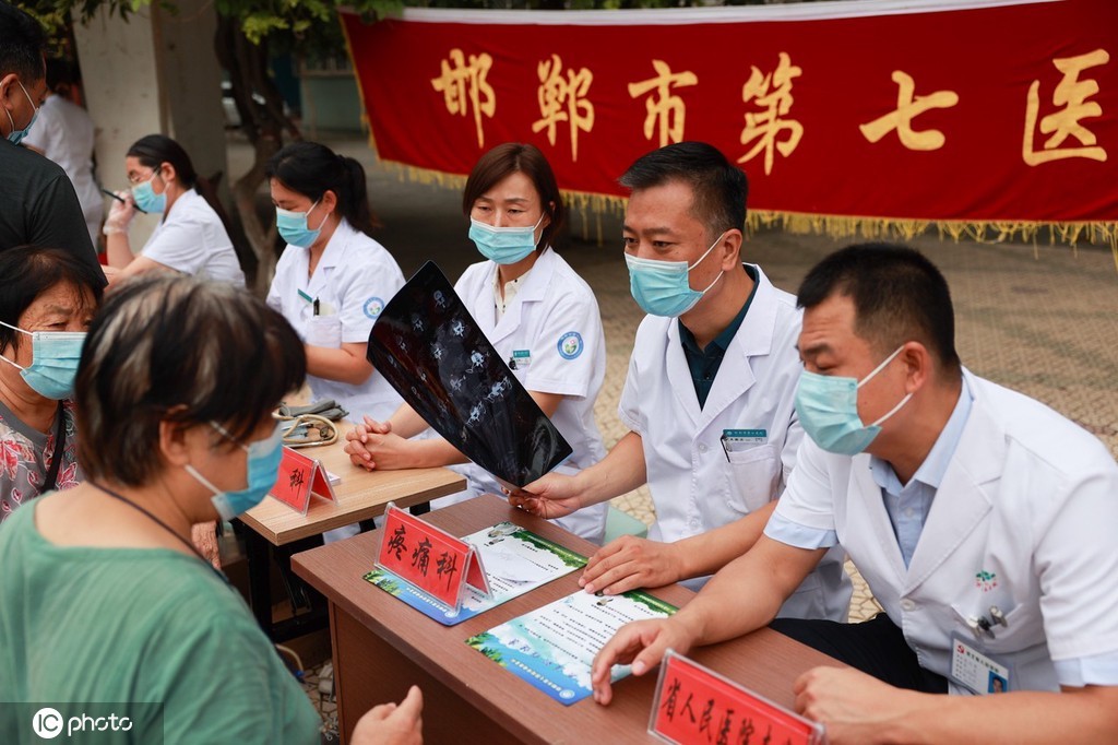 8月18日,河北省邯郸市第七医院医生为邯山区祺府院小区居民进行义诊。图片来源:IC photo