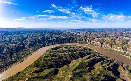 黄河乾坤湾位于陕西省延川县与山西省永和县交界的晋陕大峡谷内,黄河流经至此形成乾坤湾、清水湾等多道景观。其中的乾坤湾形似太极图,蔚为壮观。