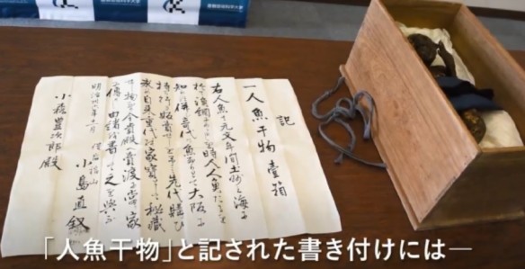 这具“木乃伊”是日本冈山民谷社理事会成员在冈山县一座寺庙中发现的,当时这具30.5厘米长的木乃伊尸体放置在一个盒子中。该成员称,它与一本神秘生物百科全书中描绘的美人鱼标本相符。在盒子中放着一张纸条,显示该尸体是渔民在1736-1741年间捕获的美人鱼,随后卖给了冈山当地一个富裕家庭。