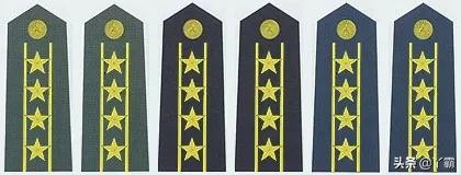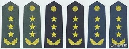 空军上将军衔主要标识为深蓝灰色肩章底版上缀有金色枝叶和三颗金色星徽。