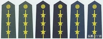 陆军上将军衔主要标识为松枝绿色肩章底版上缀有金色枝叶和三颗金色星徽。