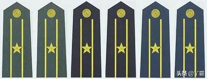 陆军上尉军衔主要标志为松枝绿色肩章底版上缀有一条金色细杠和三枚星徽。