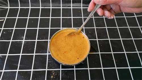 先准备半碗烧烤料,加点花椒粉和食用盐,再把烧热的油倒进去炸一下,搅拌均匀后放一边晾凉备用。