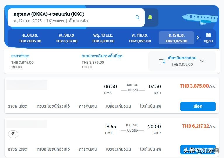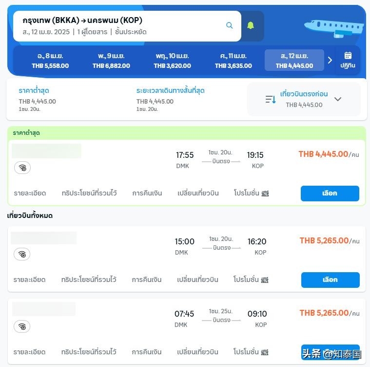 飞往南部地区的机票中,曼谷-合艾机票起价超2,000泰铢,最贵4月12日超3,000泰铢;曼谷-普吉府机票起价超1,000泰铢,最贵4月12日超2,700泰铢。而综上数据显示,最值得关注的是飞往东北部地区的机票,部分日期内的价格高于其他地区。