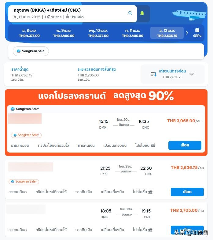 泰国宋干节机票价格上涨!最贵南邦府票价超7000泰铢!