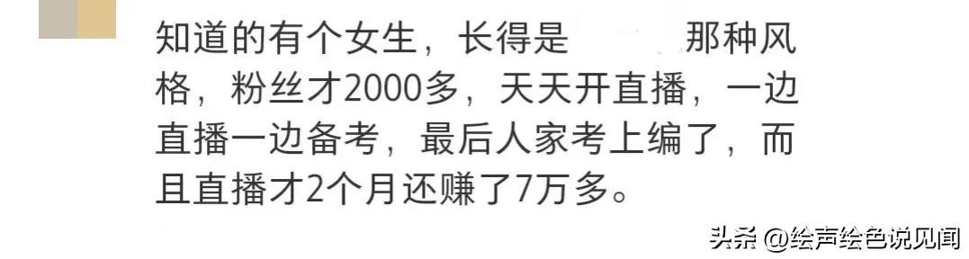 有个女生粉丝2000多,一边直播一边备考,2个月赚了7万多,也考上了。