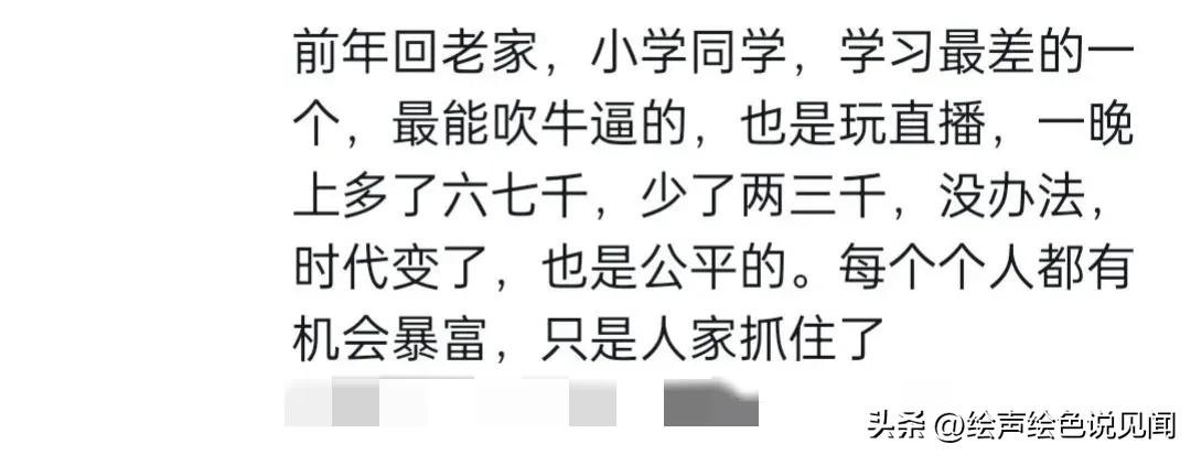 以前的小学同学做直播,一晚上的收入过千。但他也是凭他的本事赚的。