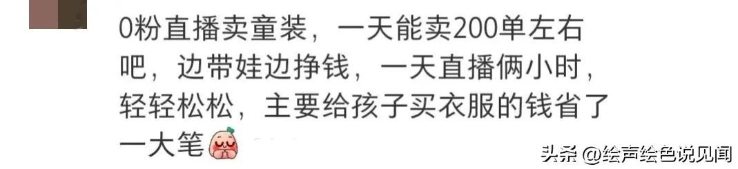 粉丝不多,自己进货直播卖童装,一天能卖200单左右。不过这个考验你的选品能力和卖货能力。
