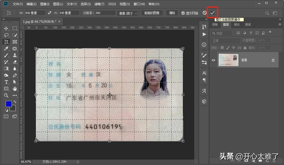 按回车键或者点击上面的应用按钮,身份证就裁剪好了。