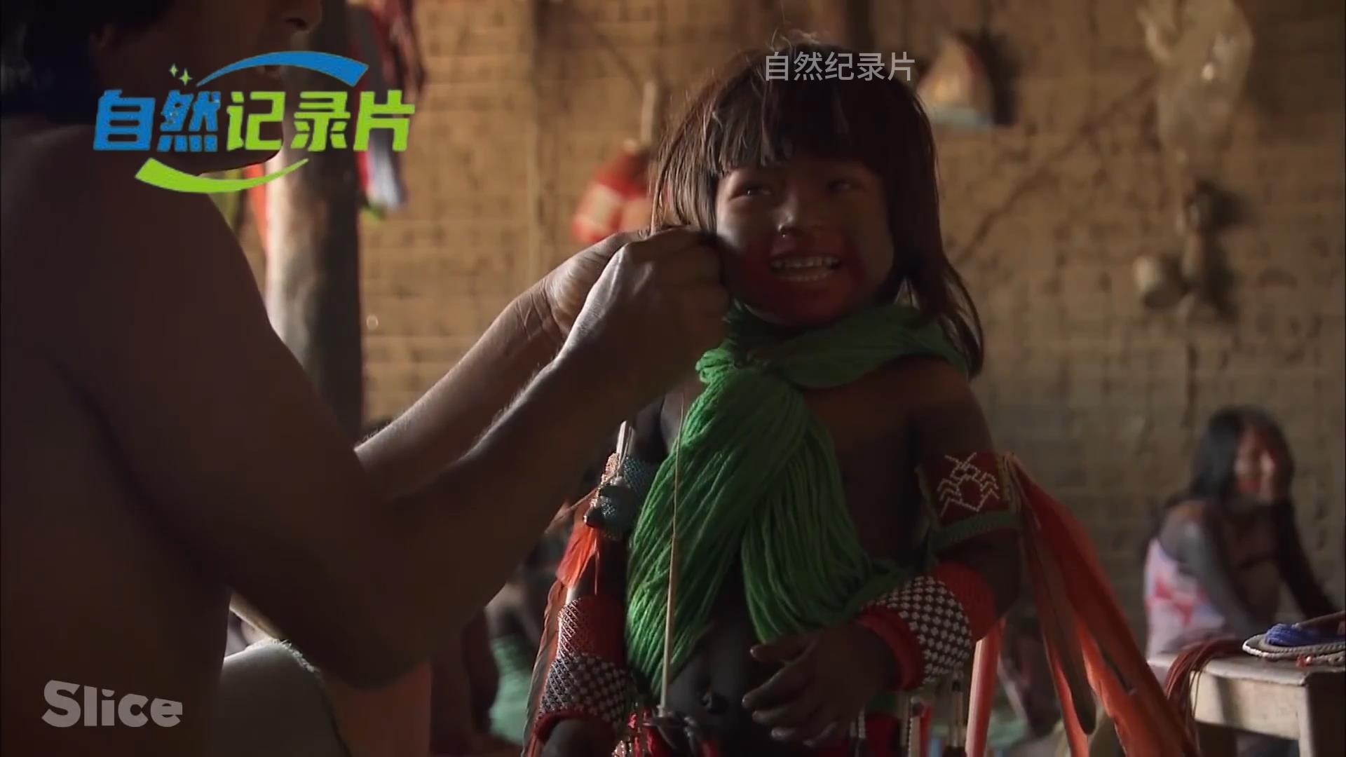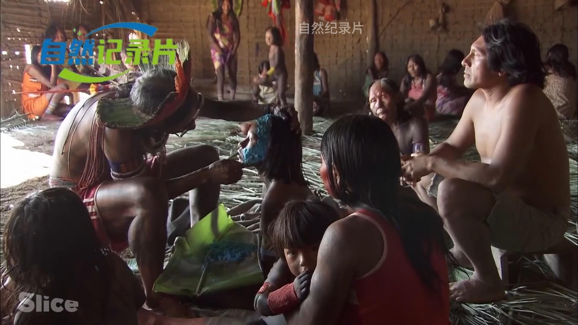原始部落的女人负责家务事以及照顾老人、孩子,其实部落的女人都非常能干,她们有一种特殊的技能,就是在孩子身上进行人体彩绘。