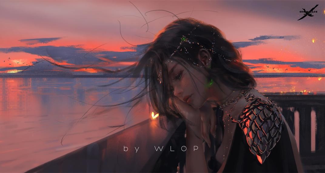 首先要给大家介绍的是wlop,是阿迷心目中的“天花板”之一,wlop的作品不多,单凭一部《鬼刀》就享誉国内外,但wlop不是全职的绘画师,而是一边写代码、一边绘画的画圈大佬。