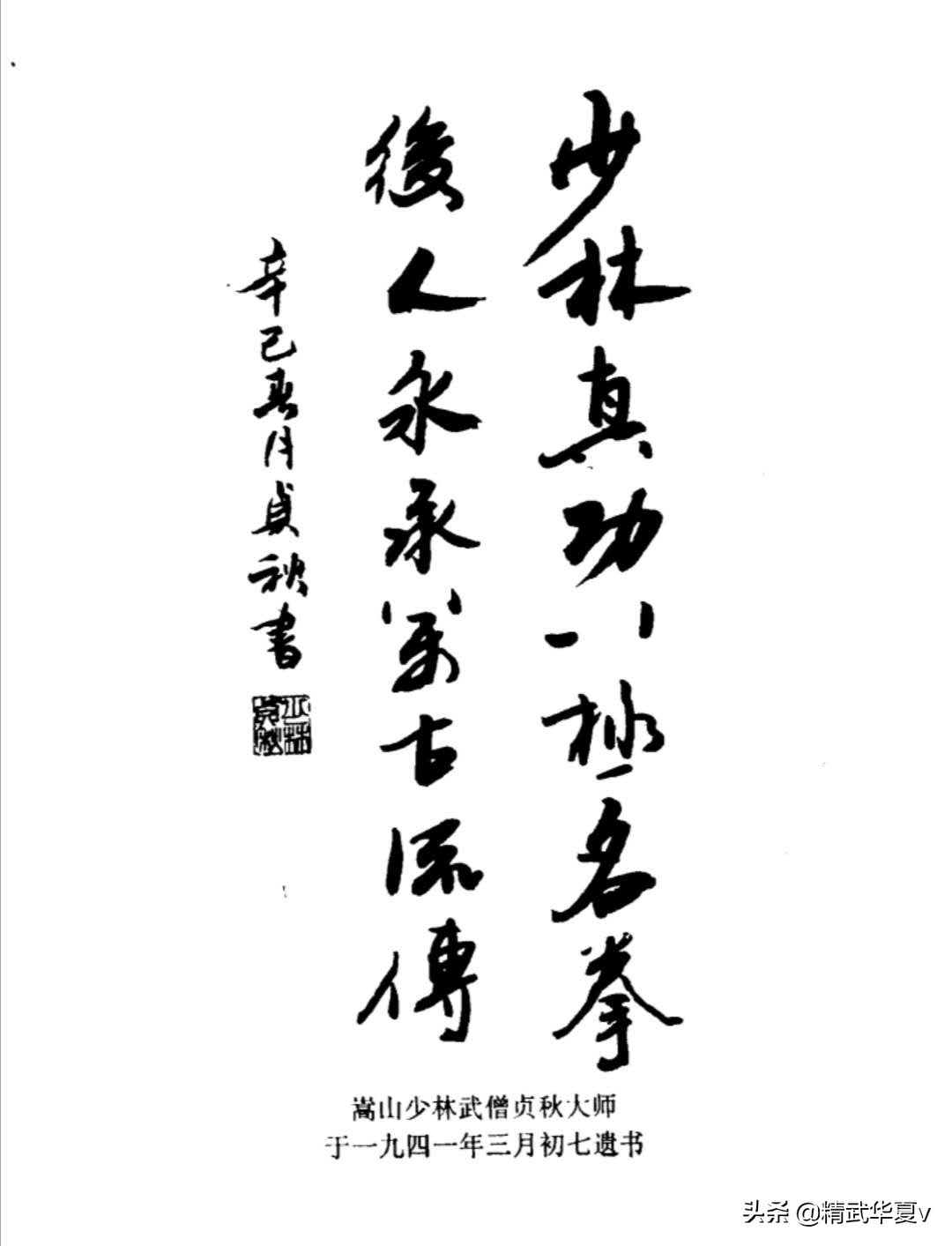 少林八极拳,是少林拳术的优秀传统套路之一,为少林寺著名武僧贞秋、貞方、贞绪和皈依弟子马希貢及八极名家吴秀峰等老前所秘授。