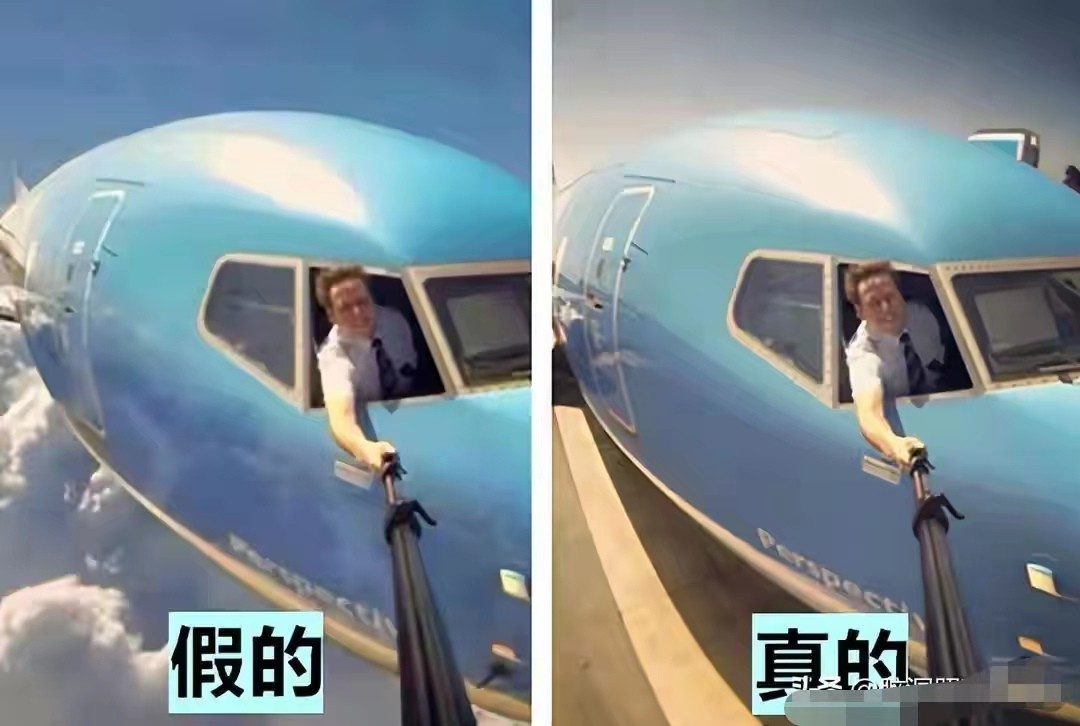 图四:左边这张照片曾经在网上引起轰动,飞行员居然在空中打开机窗自拍。后来经过证实,实际是飞机在地面的时候打开机窗拍的!如若在空中这样自拍的话,更本不可能。