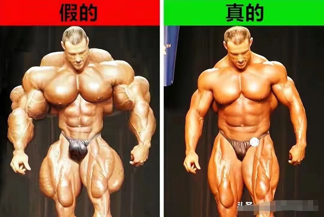 图二:吹起来的肌肉男,左边这张照片曾经在网络上火爆了一段时间,受到了很多网友的关注,后来人们找到了真人,才发现原来右图才是真的。左图是经过PS处理后制作而成的