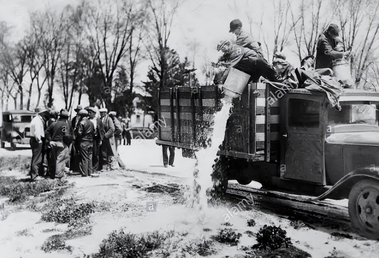 这样一个恶性闭环让美国经济瞬间崩溃,失业率高达25%,遍地都是失去工作没有了收入的人。虽然当时的美国生产过剩,有很多的商品卖不出去,但资本家为了稳定物价,不让任何人占便宜,即使将商品毁掉也不会赠给流浪汉,代表事件就是美国商家将生产过剩的牛奶倒入密西西比河