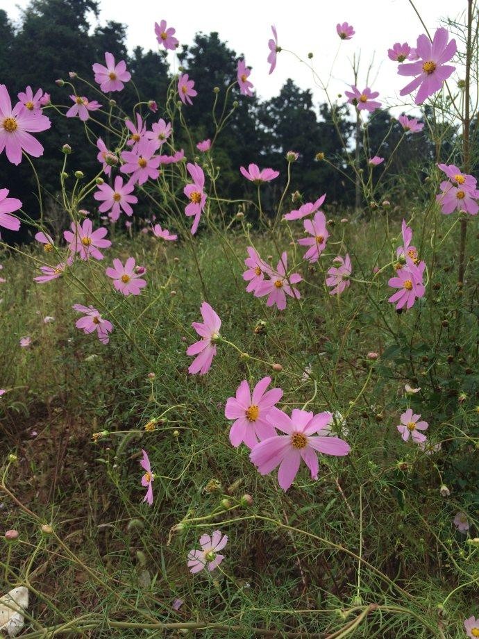 江西道教名山阁皂山湖畔草地上盛开着艳丽的格桑花